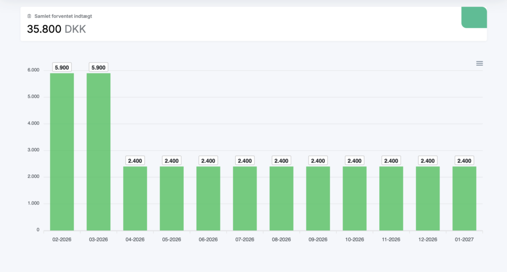 Forecastet bygger på faktiske aftaler og vilkår – ikke manuelle estimater.